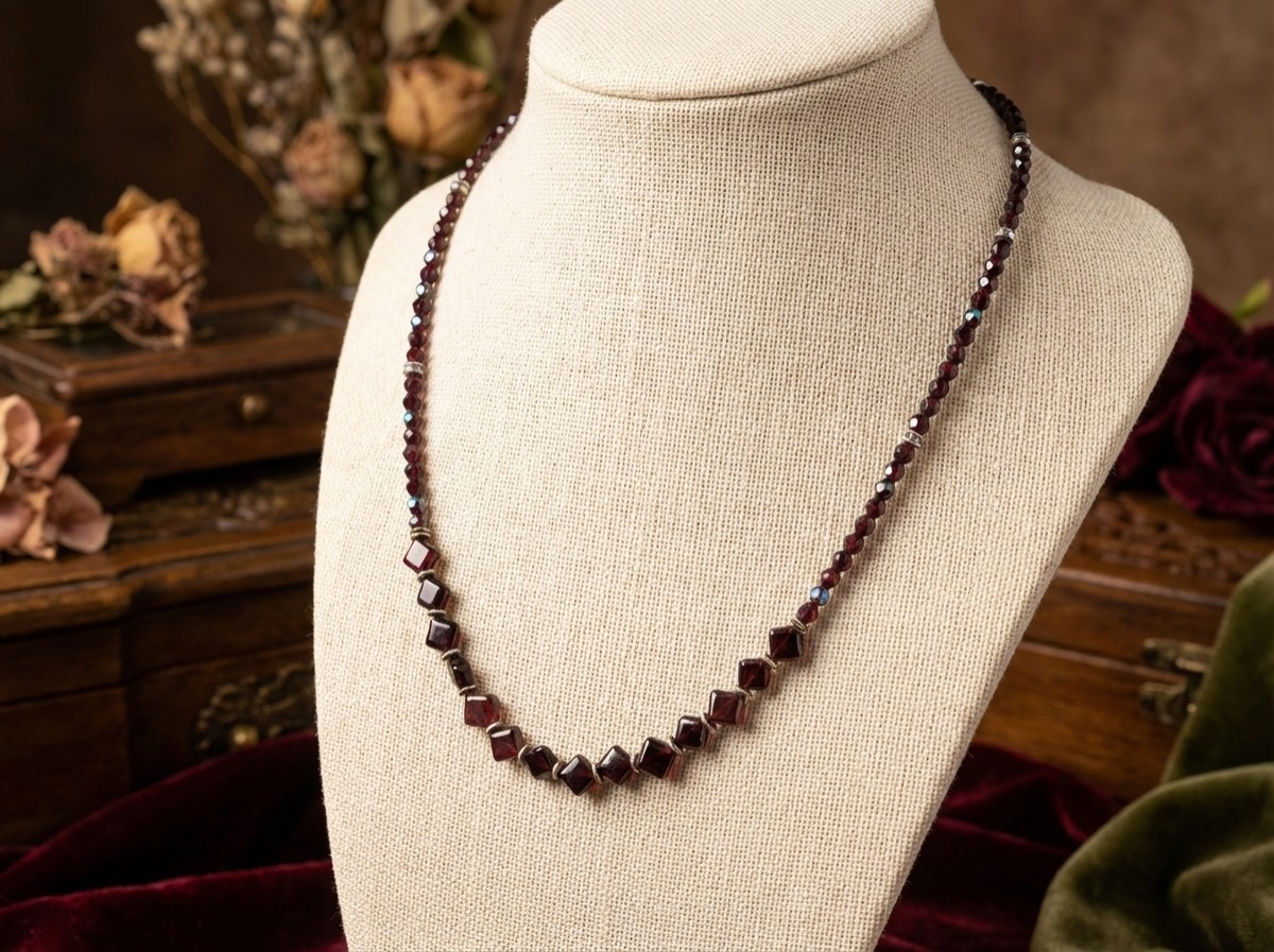 Des losanges de grenat forment le motif central.